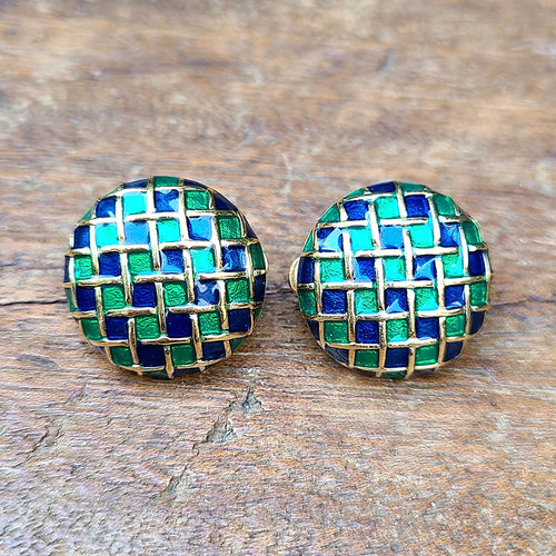 緑×青エナメルイヤリング
