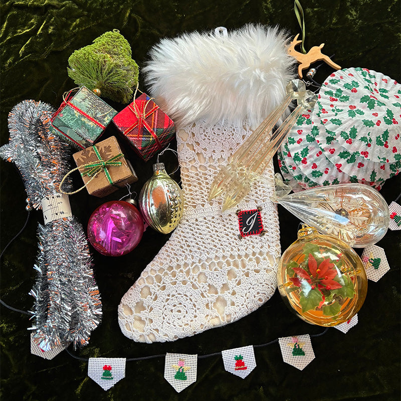 ソックスとギフトBOX型オーナメント、ガーランドへは