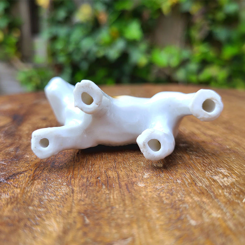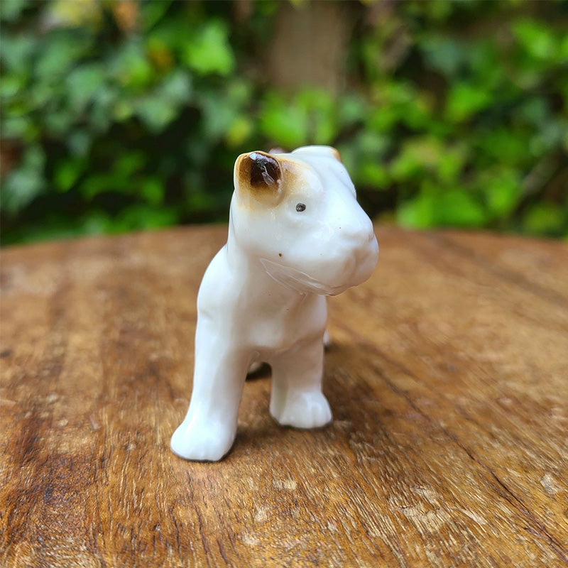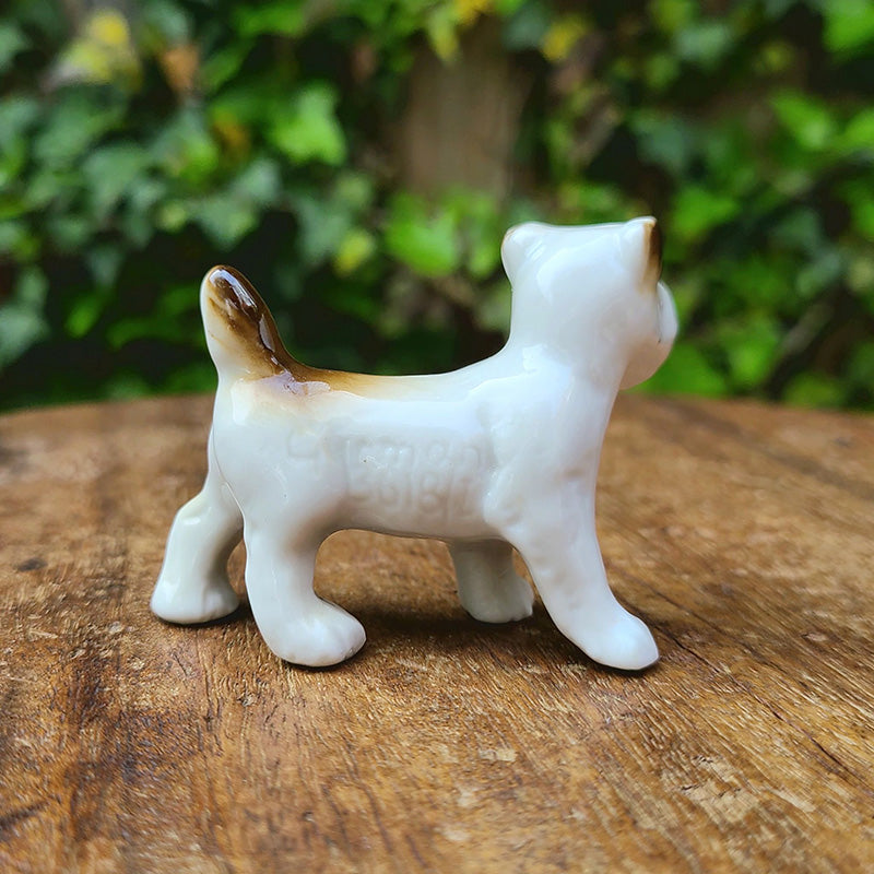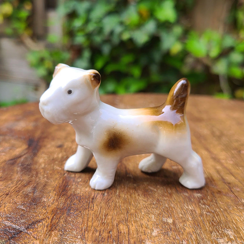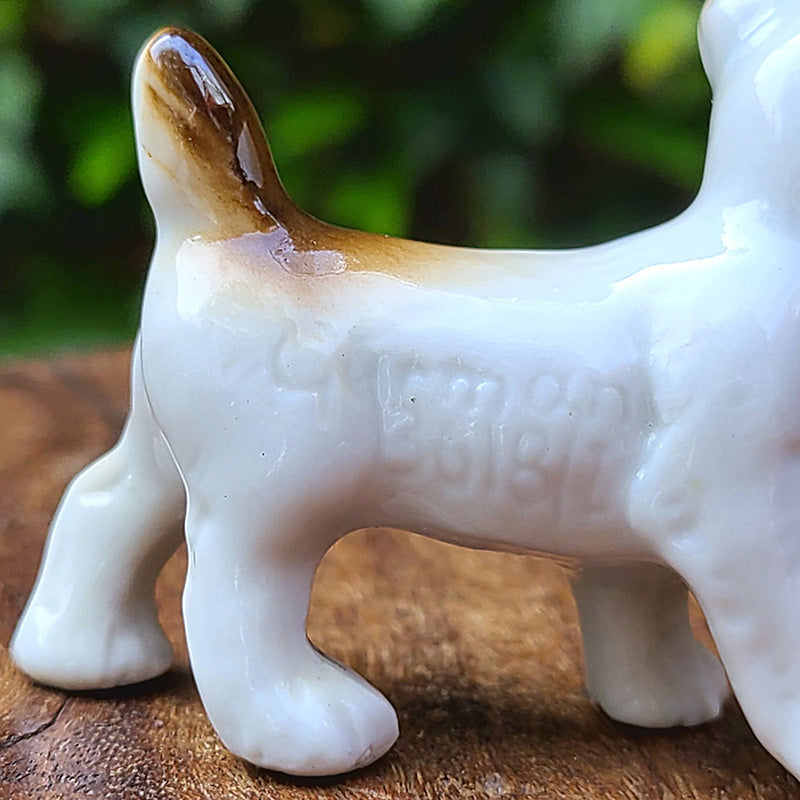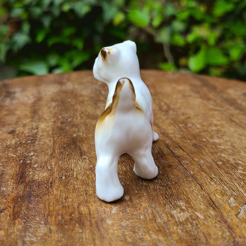 茶ブチの ドッグフィギュリンです。 テリア系の子犬でしょうか。 ピンと立った尻尾や キョトンとした 愛らしい瞳が印象的な フィギュリンです。 右側の体側面に Germanの刻印有